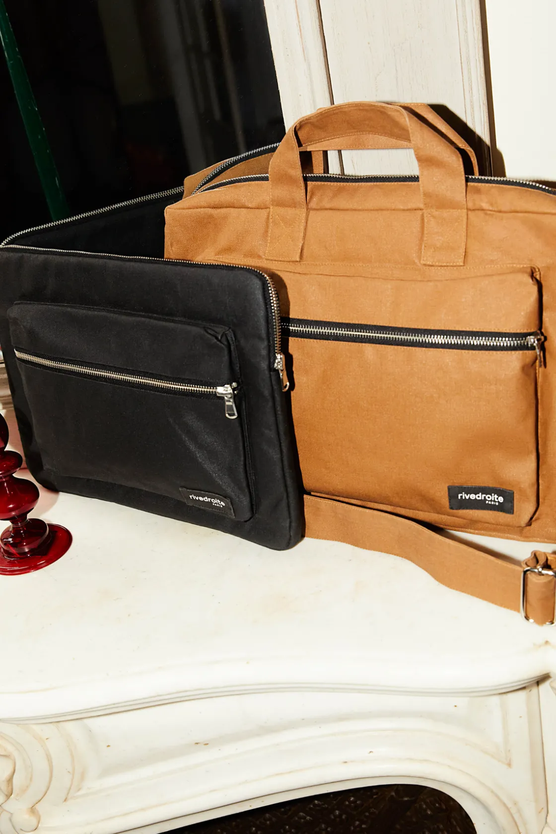 Chaptal dispose d’un grand compartiment principal séparé en deux pour bien compartimenter vos affaires à l’intérieur du sac, d’une poche intérieure zippée pour y glisser clés, téléphone etc, et d’une poche extérieure zippée dans laquelle vous glisserez facilement vos chargeurs et carnets de notes.