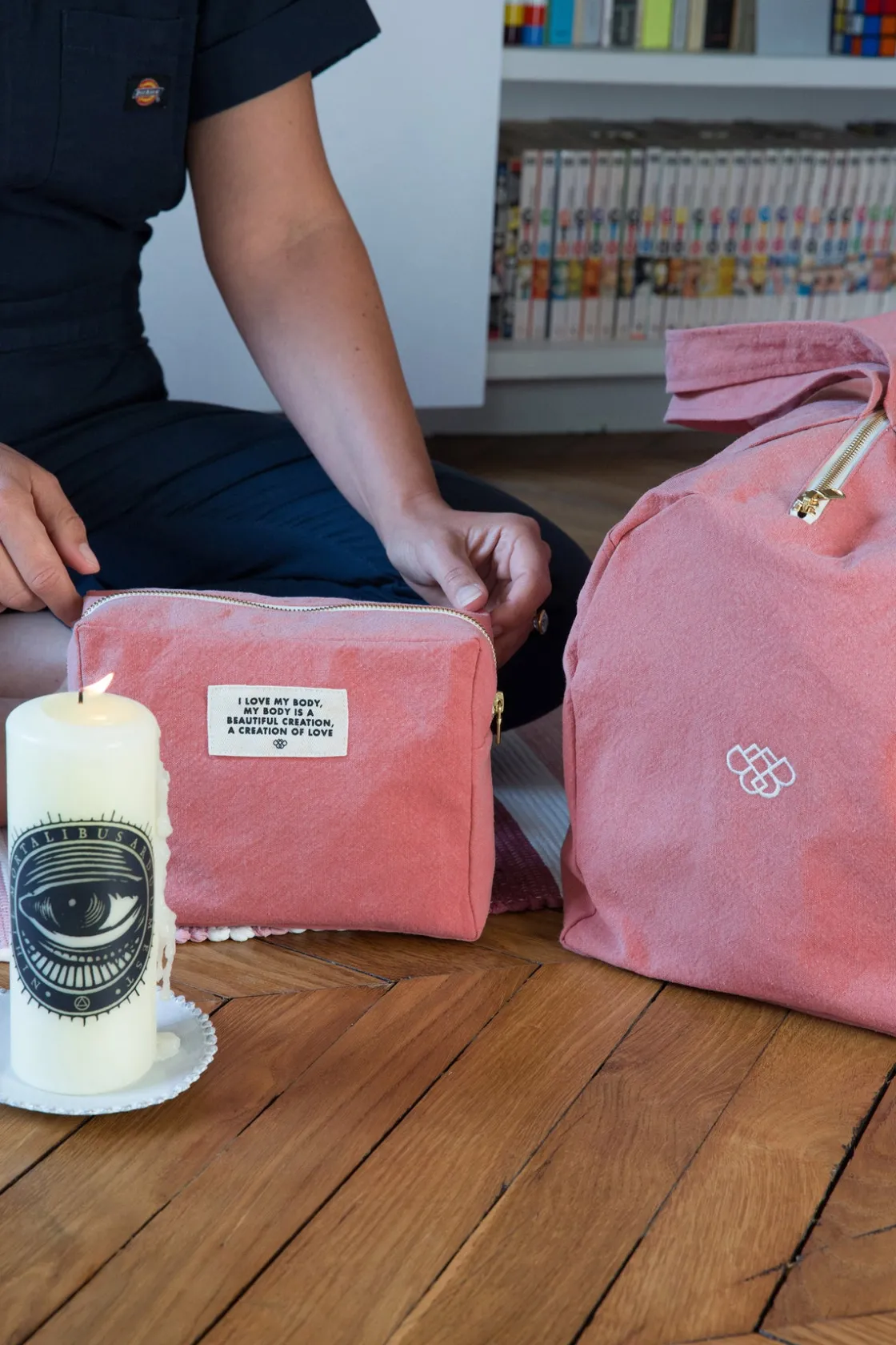 La deuxième pièce de notre collaboration avec Lili Barbery est une trousse zippée bois de rose en coton recyclé qui a une double fonction. A la fois pochette pour transporter vos petites affaires et housse pour recouvrir les briques de yoga, c’est l’accessoire indispensable à glisser dans votre sac de yoga.