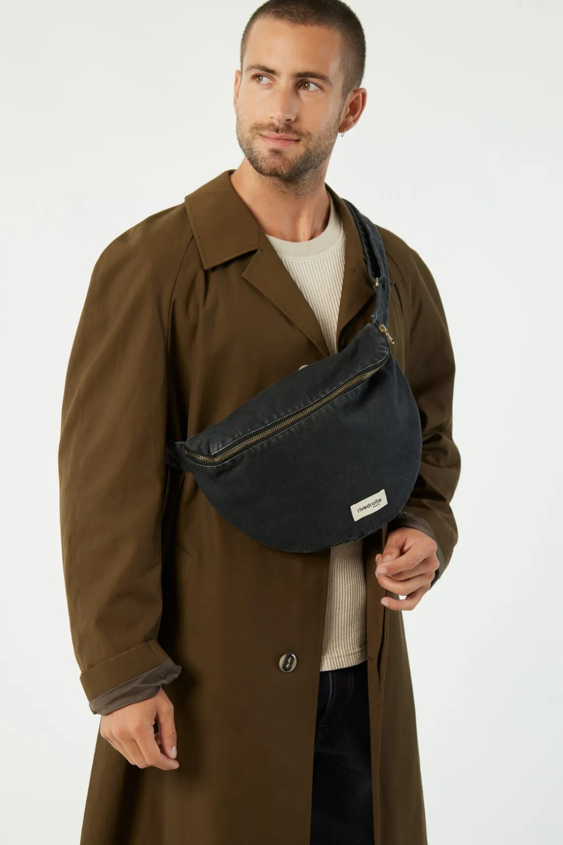 Découvrez Custine grand format, l’iconique sac banane Rivedroite dans ses nouveaux coloris de la collection Automne Camden. En noir « Smokey Black » il va donner une touche vintage à vos looks d’automne, avec sa couleur délavée à la pièce qui révèle ses belles aspérités au détour des coutures, et va se patiner au fil du temps, comme le jean que vous adorez porter au quotidien.