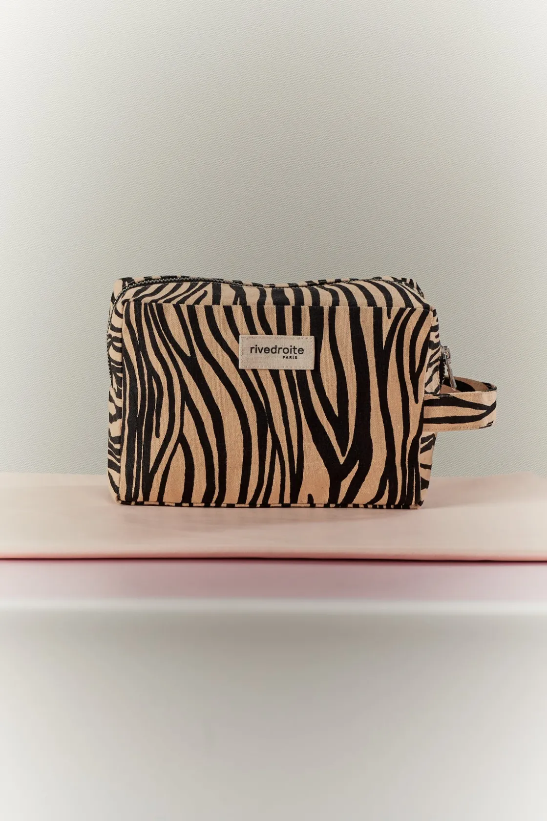 Tournelles XL version Zèbre c’est LA trousse de toilette, plus grande que Tournelles, elle vous permet d’emporter plus de choses avec vous. Vous pourrez la glisser facilement à l’intérieur de votre sac pour rassembler tous vos petits essentiels, shampoing, gel douche, crème pour les mains, déodorant…Sa forme carrée et sa anse permettent de l’emporter partout avec vous.